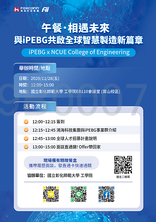 【校園徵才訊息】11/28(五) iPEBG x NCUE College of Engineering 午餐•相遇未來|與iPEBG共啟全球智慧製造新篇章